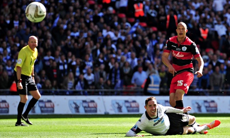When the cross came into the box, it came straight to Derby defender Richard Keogh. All he had to do was smash it away. He misjudged the cross and it bounced off his leg to QPR striker Bobby Zamora. This happened: